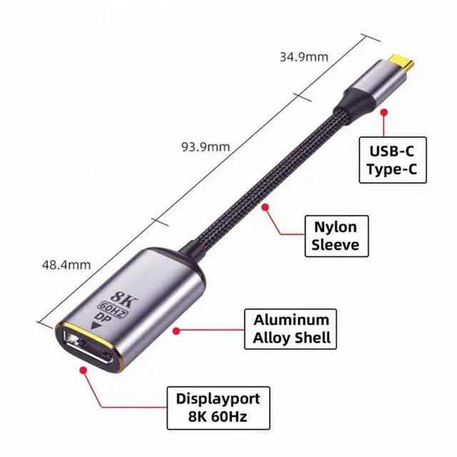 USB-C to DP cable with Slim Aluminum Shell transmits high-definition video and audio from your computer to an displays for video streaming or gaming.