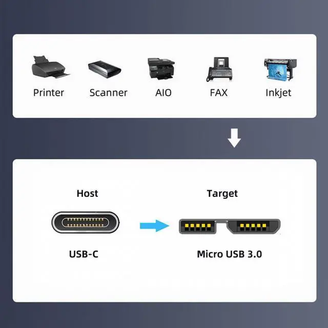 The cable only work for usb-c host to micro 3.0 device,Can't work for Micro3.0 host to type-c device.