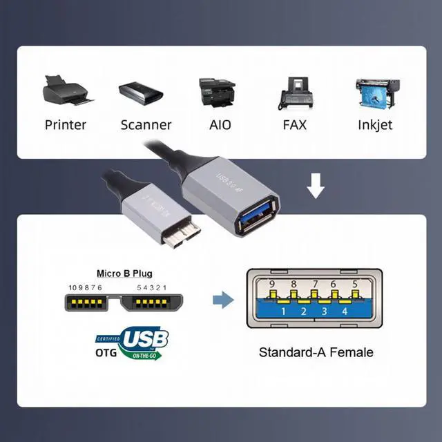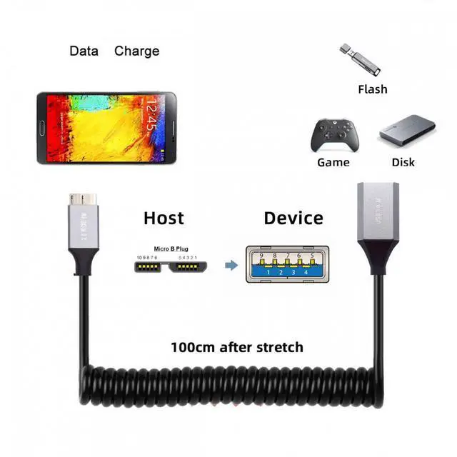 Micro-USB3.0 Male Host to USB3.0-A Female OTG Stretch Coiled Cable 100cm Extension 5Gbps for Disk Phone Camera Data