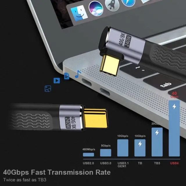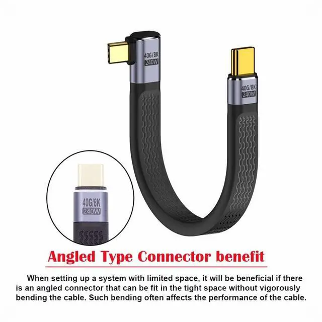 Right Angled 240W Type-C USB-C Male to Male USB4 40Gbps 100W 8K Flat Slim FPC Data Cable for Laptop Phone 13cm
