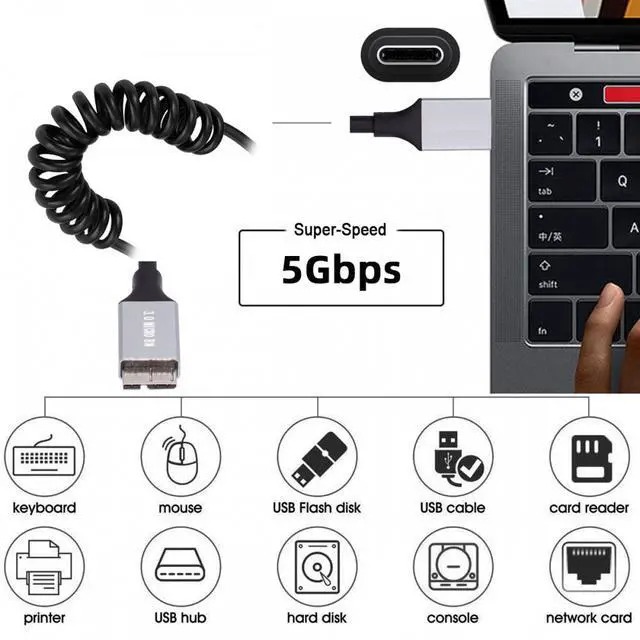 USB-C Type-C Host to Micro-USB3.0 Male OTG Stretch Coiled Cable 100cm Extension 5Gbps for Disk Phone Camera Data