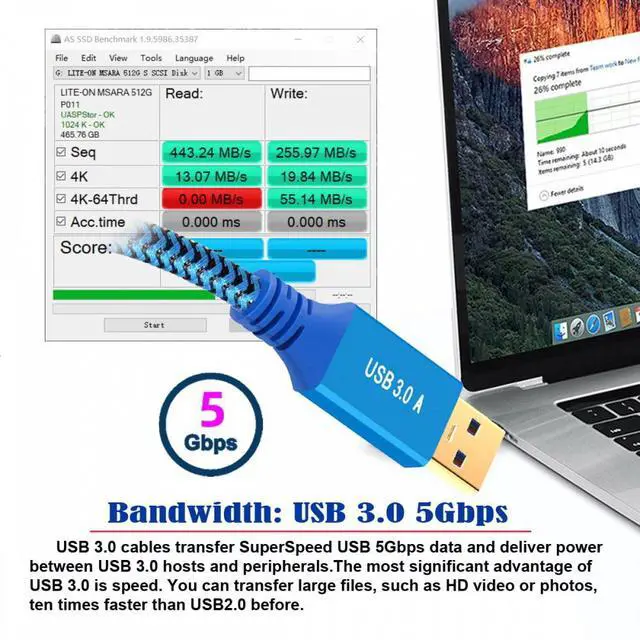 USB 3.0 Type-A Male to USB3.0 A Male Cable Extension 5Gbps for Disk SSD Camera Data