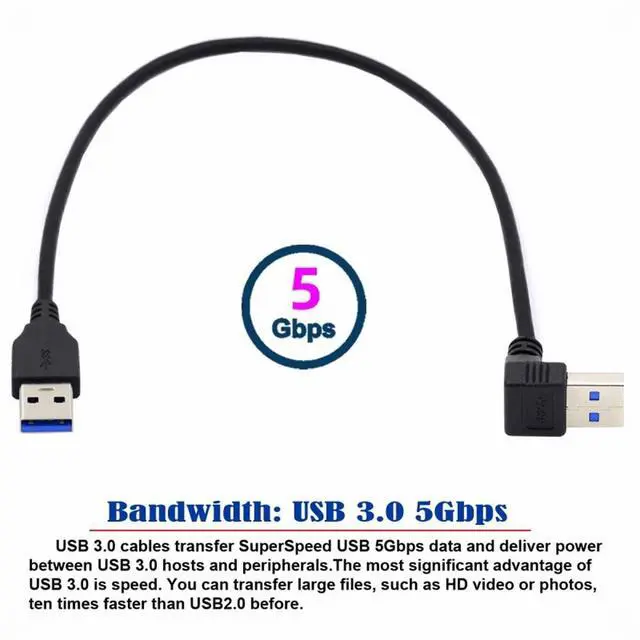 • Angled USB 3.0 Type-A Male to Straight 3.0 Type-A Male Data 5Gbps Cable 90 Degree Angled 40cm