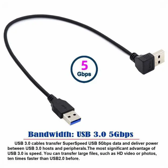 Angled USB 3.0 Type-A Male to Straight 3.0 Type-A Male Data 5Gbps Cable 90 Degree Angled 40cm