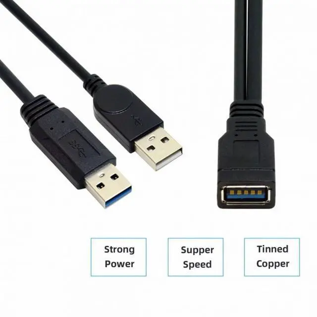 Dual USB Type-A connector, One is for USB3.0 power and data, another one for USB2.0 extra power only(No data transfer for this port).