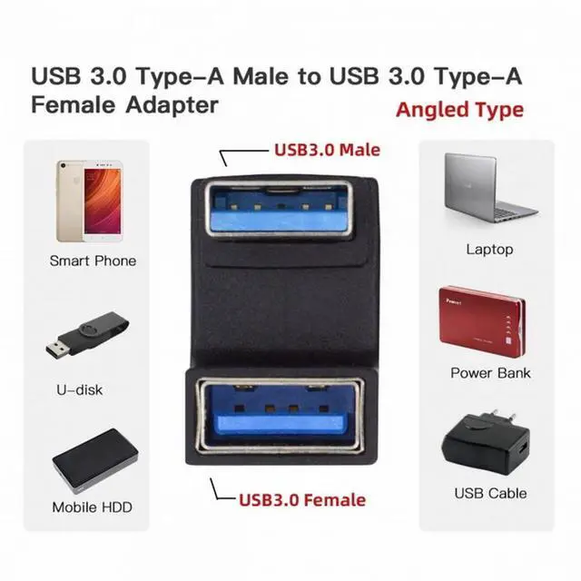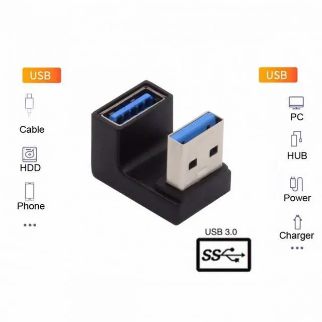 Angled USB 3.0 Adapter, Type A Male/Female,Support 10Gbps data transfer rating.