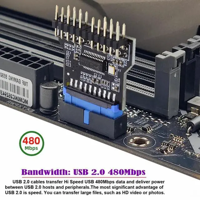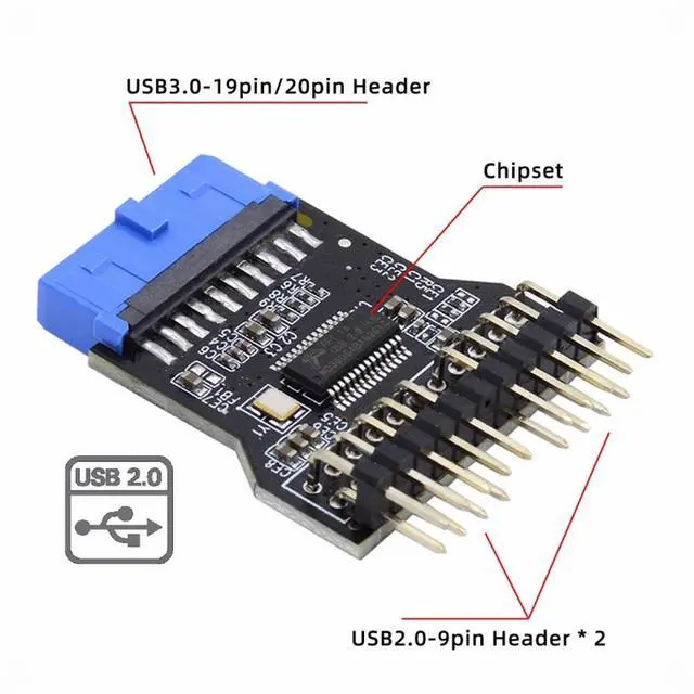 It can extend your motherbord USB3.0 19pin connector to 2*USB2.0 9pin connectors.