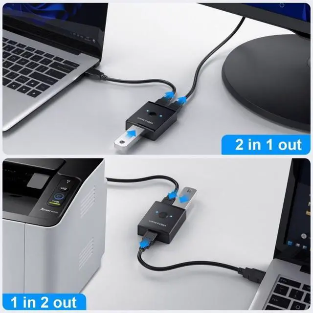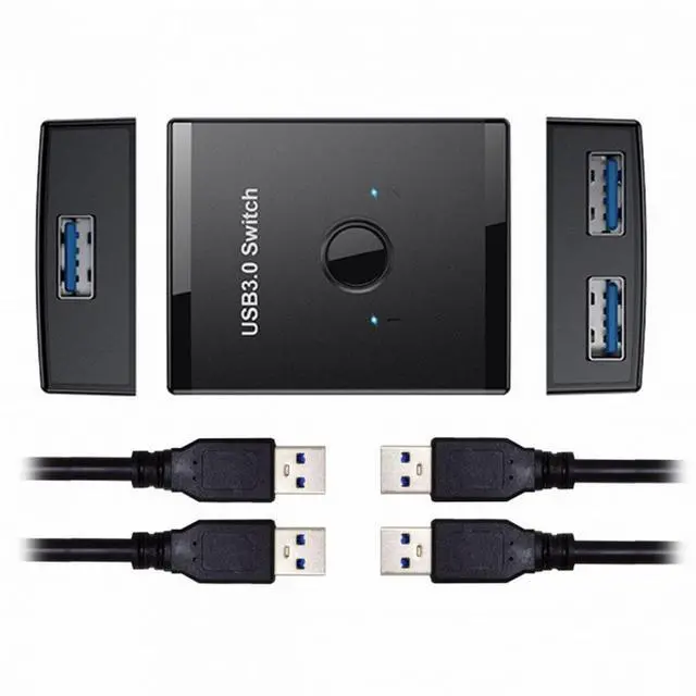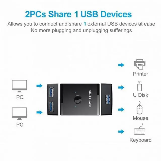 KVM USB 3.0 Bidirectional Switch Selector 2 to 1 PCs Sharing or 1 to 2 Hub for Keyboard Mouse Scanner Printer