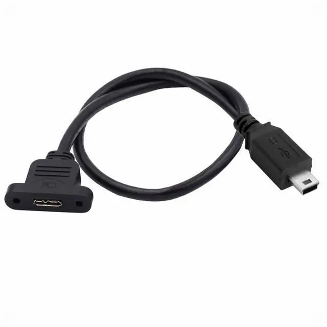 Mini USB 2.0 5Pin Male to Micro 3.0 Type-B Female Screw Mount Type Extension Cable 480Mbps