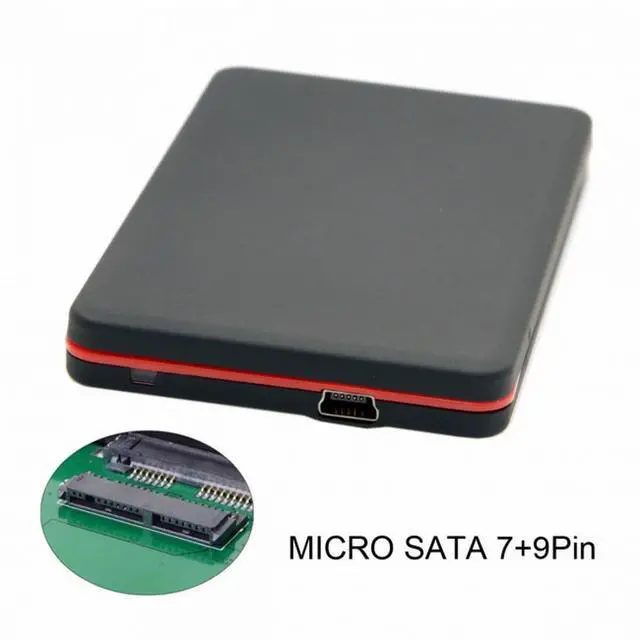 USB2.0 480Mbps to 1.8 inch Micro SATA 16pin 7+9 SSD HDD External Hard Disk Enclosure