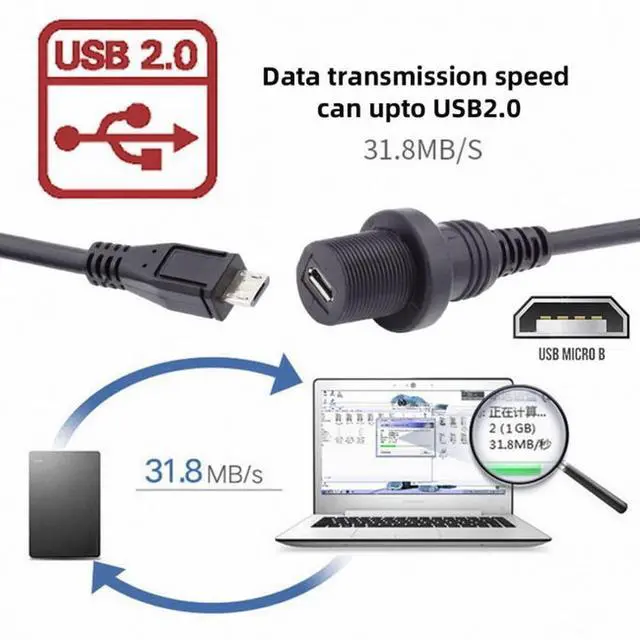 1m Waterproof 480Mbps Micro USB2.0 5Pin Male to Female Extension Data Power Cable