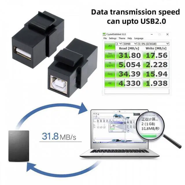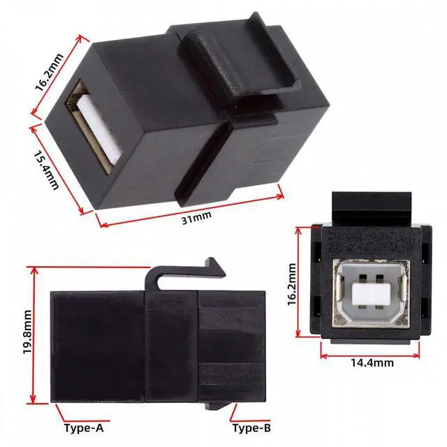 USB2.0 A Female to Type-B Female Extension Keystone Jack Coupler Adapter for Wall Plate Panel USB Cable