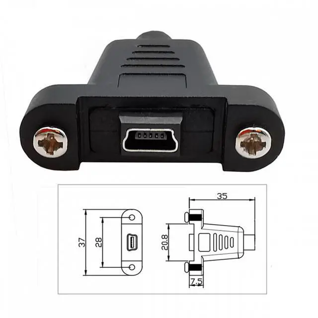 Connector A: Mini USB2.0 Female Dual Screw-Lock Panel Mount
