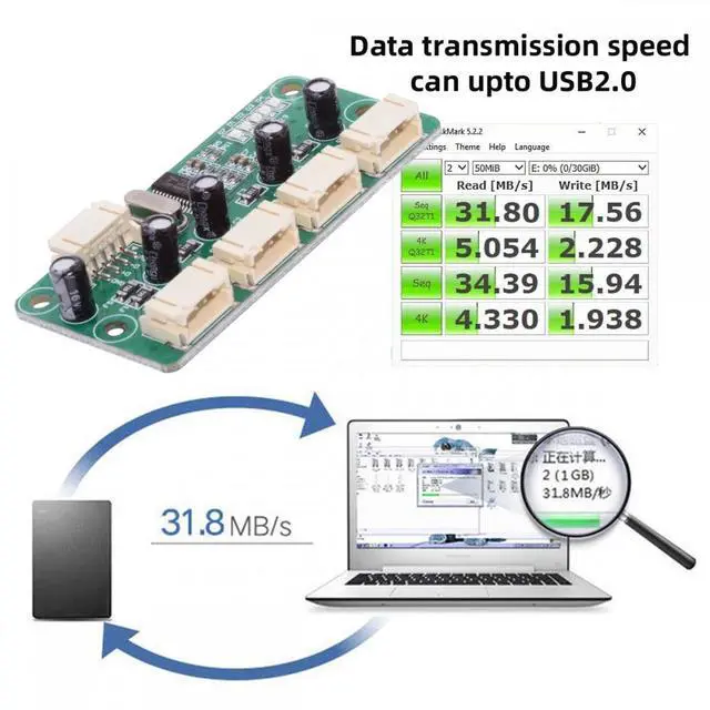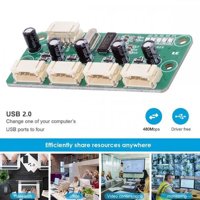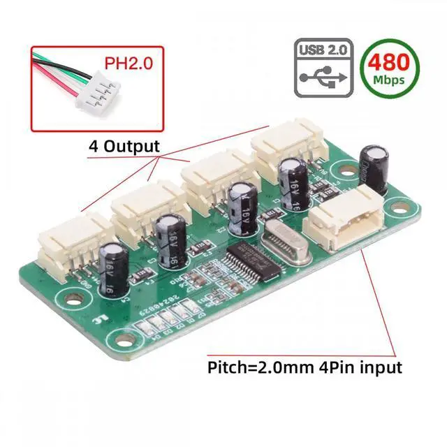 USB 4Pin Pitch=2.0mm Wafer 1-to-4 Four Ports HUB PCBA PCs 4 Devices for Keyboard Mouse Scanner Printer