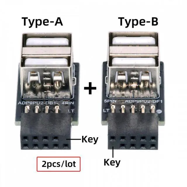 Different connector direction for two adapters.Type-A and Type-B, Two type in the package.(Please refer the key of 9pin header)
