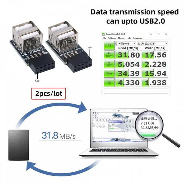 The adapter Provides a high speed of 480 Mbps, standard 2.0 connector provides excellent electrical conductivity, and high-speed transmission data is fast and accurate.