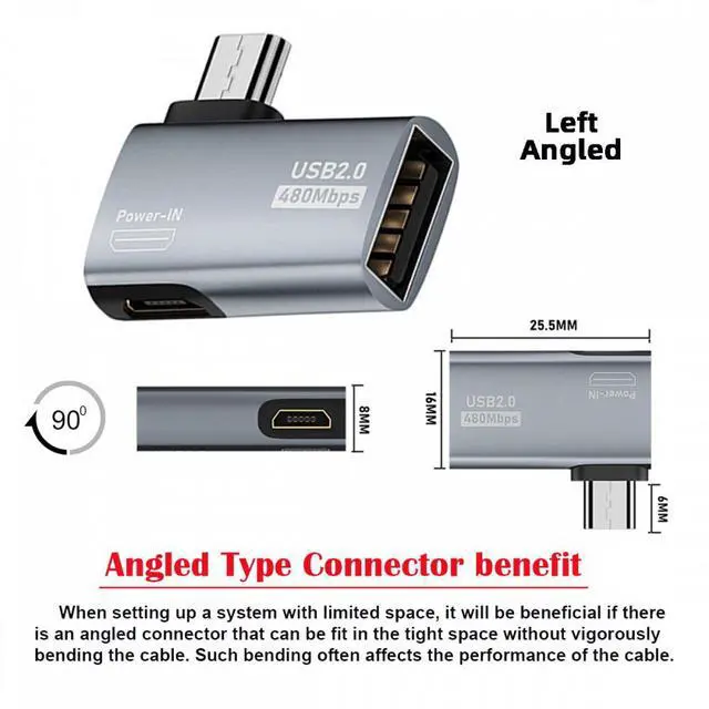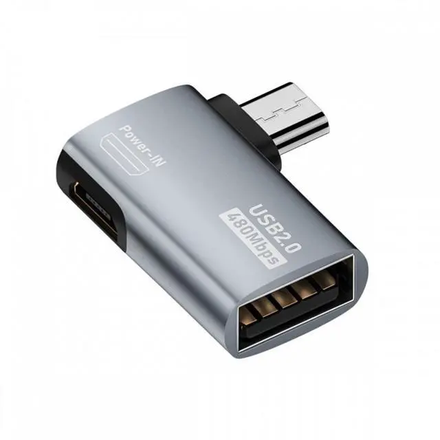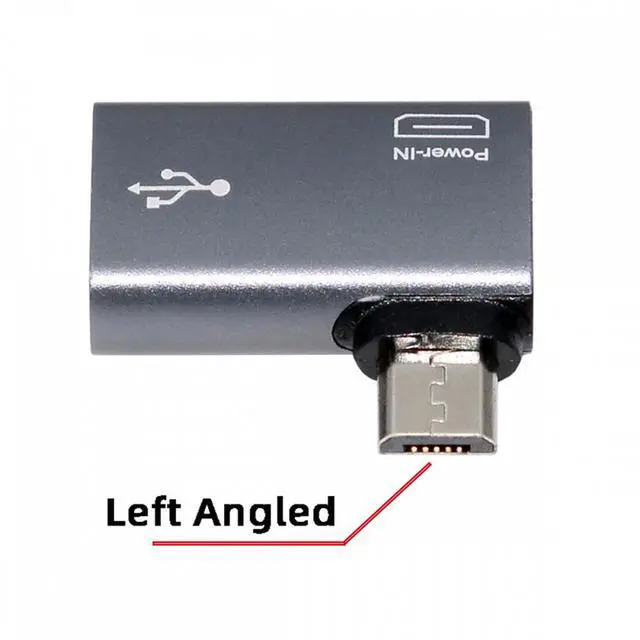Micro USB 2.0 to Type-A Female OTG Host Adapter 90 Degree Angled with USB Power for Phone Tablet