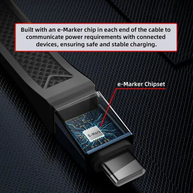 This USB5.0 Cable can support Max 240W/140W/100W 28V/20V/5A Charging, It will supply power when your USB-C device is in use. Reversible Design for Type-C connector,Reversible plug orientation Cable direction.