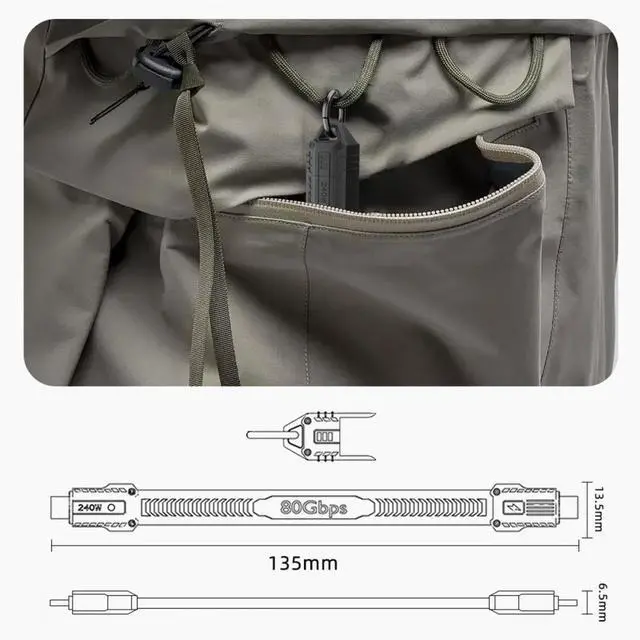 USB5.0 80Gbps Flat Slim FPC Cable 240W 16K@30hz 8K@60Hz 5K Lanyard Strap Chain Compatible with USB4.0 Thunderbolt3/4/5