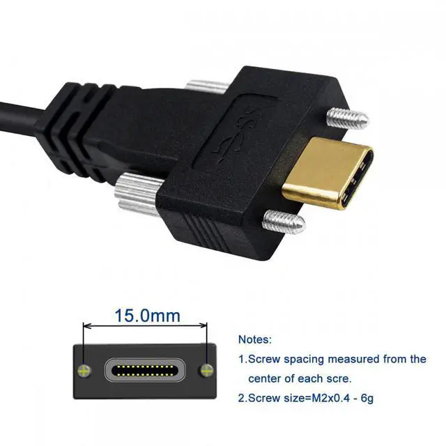 The USB Type-C Cable With Locking Screw features USB-C male connector with M2 screw,Type-C connector is the new design for USB 3.1,Reversible Design for Type-C connector.