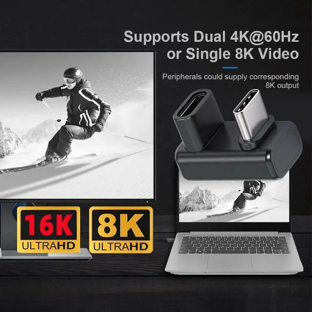 This USB5.0 adapter enables to connect from your USB5.0/USB4.0 or thunderbolt3/4/5 Port equipped Devices to your USB-C Monitors, It supports Single 16K@30hz, 8K@60hz, 5K@60Hz or 4K@120Hz max. video Resolution in your external displays.(please make sure your monitor's Type-c port support DP Alternate Mode for Video.)