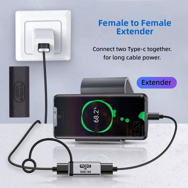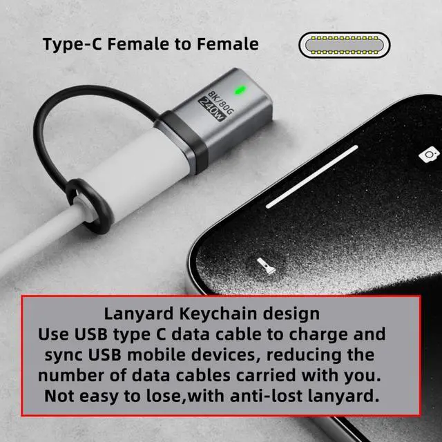 USB5.0 80Gbps Female to Female Extension Adapter with Lanyard Keychain 240W 16K 8K 5K Compatible with USB4.0 Thunderbolt3/4/5
