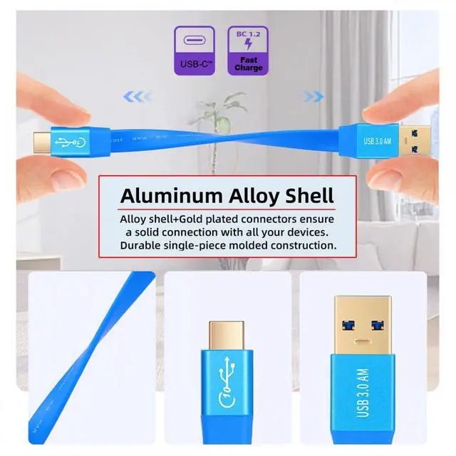 Type-C connector is the new design Compatible with phone,Reversible Design for Type-C connector.Small size,Fully plug and play. Easy carrying,and more flexiable; Blue aluminum alloy shell,Light and easy to carry.With special tangle-free design jacket for long-term, rugged durability.