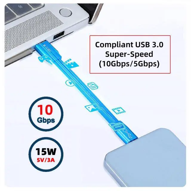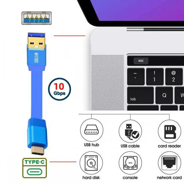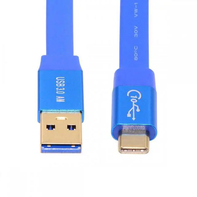 Ultra Flat Slim USB 3.0 Type-A Male to USB-C Type-C Male Cable Data Blue 10Gbps for Laptop Computer Disk SSD Camera