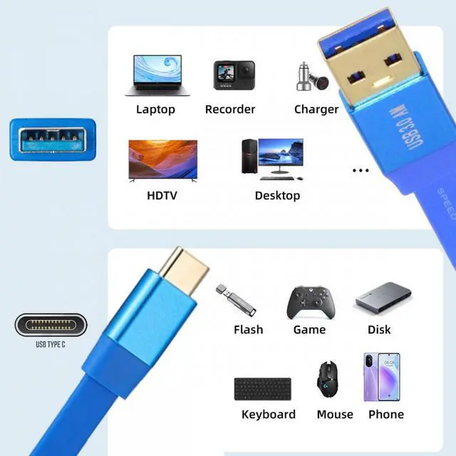 This USB Cable is widely compatible with Most of USB-C Devices, Such as Laptop Tablet Phone Camera, backward compatible with USB3.0, You can also connect with Disk Drivers for Data.