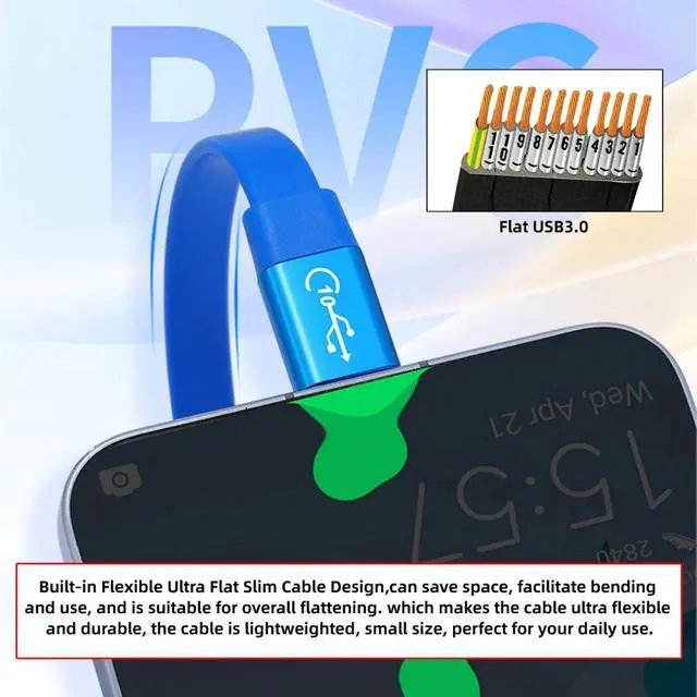 The internal use of copper lines instead of traditional copper lines can save space, facilitate bending and use, and is suitable for overall flattening. Then add an integrated PVC quilt around the wire, which makes the cable ultra flexible and durable, the cable is lightweighted, small size, perfect for your daily use.