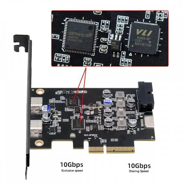 Dual Chipset: ASM3142+VL822 chipset, ASM3142 supports the new feature of USB3.1 Gen2, named Multiple INs to achieve fully utilization rate of 10Gbps data rate, taking advantage of the available bandwidth of USB3.1 Gen2 bus. VL822 is a versatile USB 3.1 Gen 2 Hub Controller, offering a highly integrated, application-specific design.
