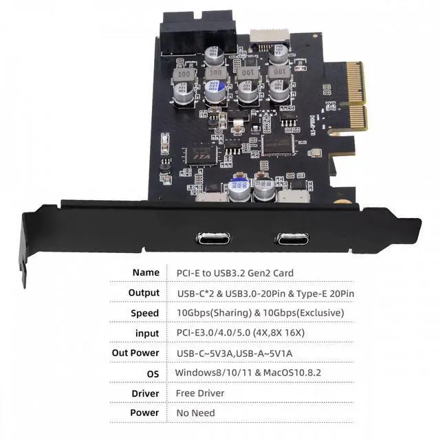 Type-E USB 3.1 Front Panel Socket and USB3.0 19Pin/20Pin and Dual Type-C USB-C to PCI-E Express Card Adapter ASM3142 VL822