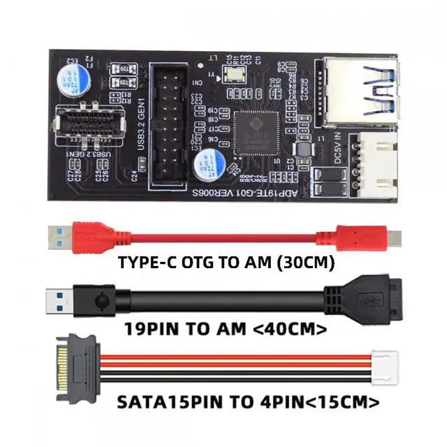 Type-C or USB 3.0 19/20Pin Motherboard Host to Dual USB 3.0 19/20Pin and Type-E Header, With extral SATA power cable.
