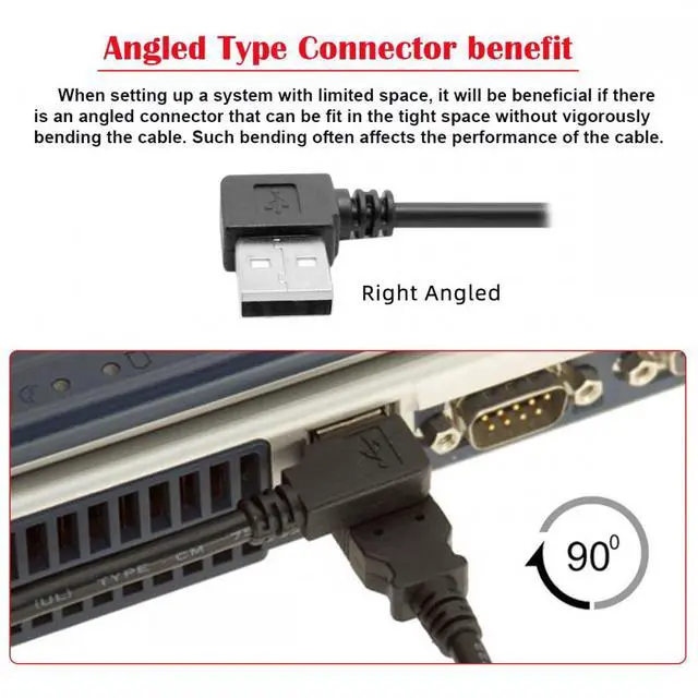 The USB plug is angled type; The angled type Allowing you to connect it to a female port, even if space around the port is limited.
