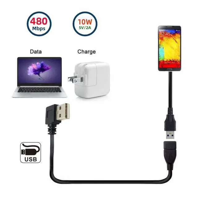 480Mbps USB 2.0 Angled 90 Degree A Type Male to Female Extension Cable