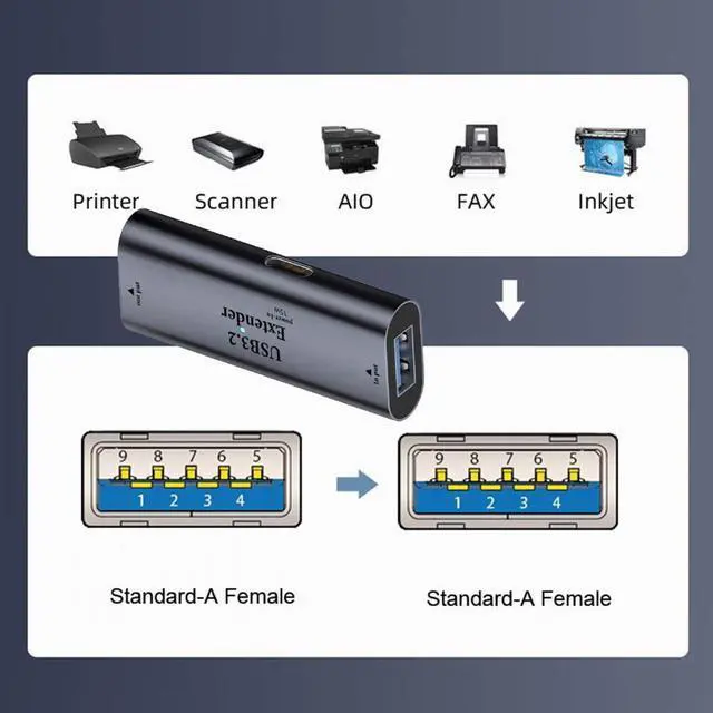 USB 3.0 Repeater Adapter Type-A Female to Type-A Female Extender with Chipset for Printer Computer