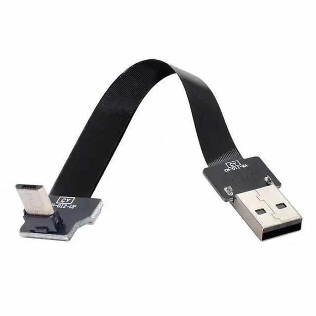 Up Angled USB 2.0 Type-A Male to Micro USB 5Pin Male Data Flat Slim FPC Cable for FPV Disk Phone