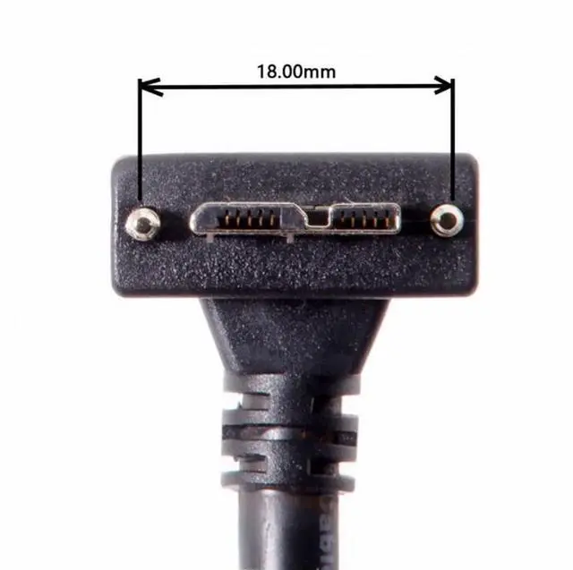 Connector2: USB 3.0 Micro B type male with Screw and angled 90 degree