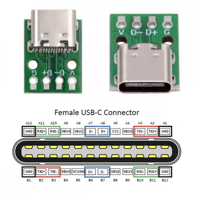 Note: The pinout only support USB2.0 data and DC5V power, Not work for Type-C PD function.