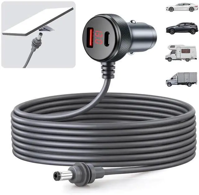 VERSATILE DESIGN: 3-in-1 cable featuring both USB-C and USB-A ports for flexible charging options with Starlink Mini compatibility. With voltage display is suitable for Portable Power Stations, cars, trucks, vans, yachts, large boats, and also supports other charging devices with a 12V-48V cigarette lighter jack.