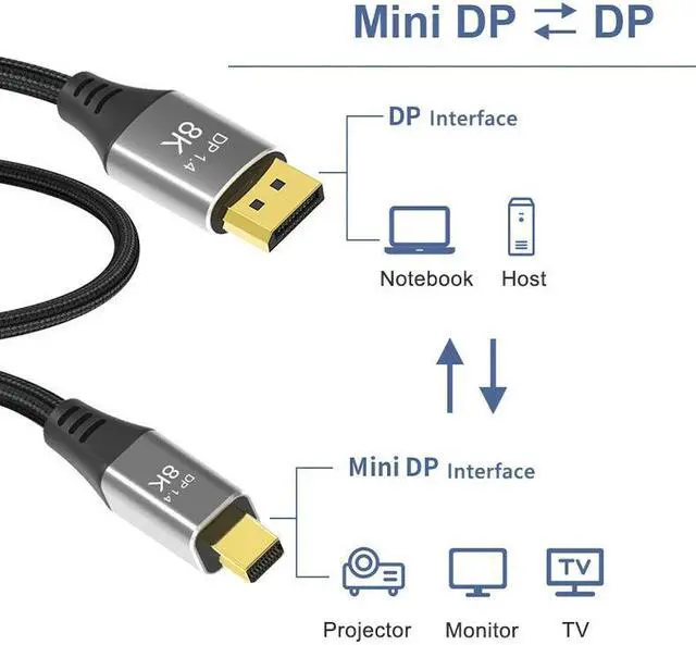 8K Mini DisplayPort to DisplayPort 1.4 Cable 240Hz