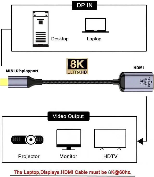 Support 8K@60Hz, 4K@120Hz, 2K @144Hz