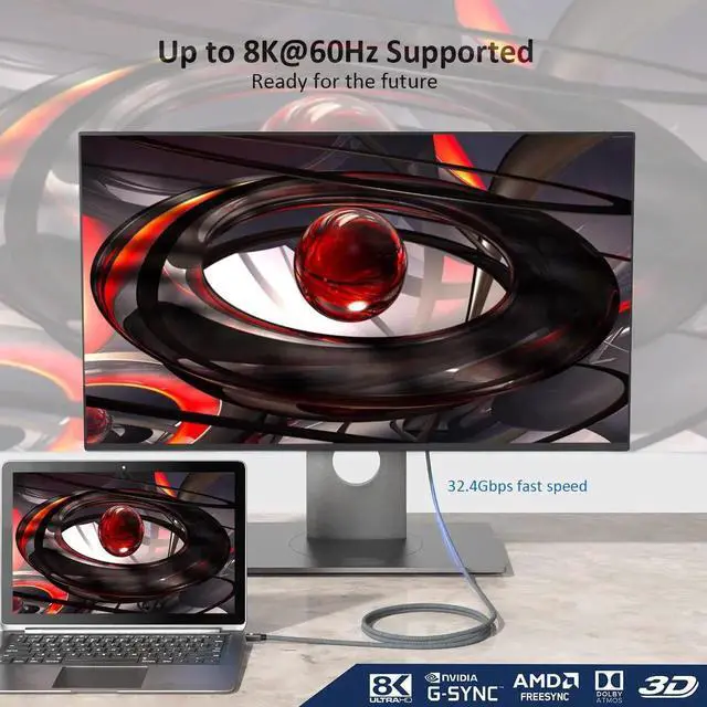 8K Mini DisplayPort to DisplayPort Cable enables to connect from laptop equipped with Mini DisplayPort to your 8K external monitor equipped with big DisplayPort input which works beautifully whether you are planning to play video games or watch sport games on a bigger screen with high refresh rate. Compatible with Macbook iMac Mac Mini with thunderbolt 1/2 port (video output only). Thunderbolt 2 displays are NOT supported.