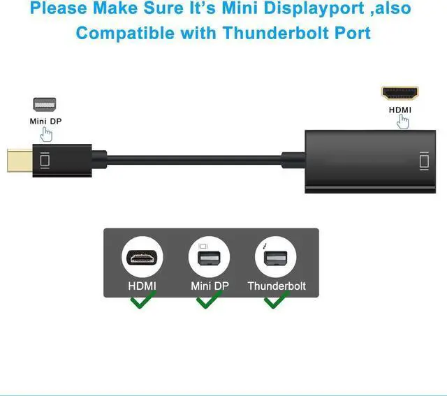 4K Mini DisplayPort to HDMI 4K Adapter (Mini DP to HDMI Adapter) - Thunderbolt | Thunderbolt 2 Port Compatible for Mac Book Imac, - Black