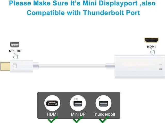 Mini DisplayPort (Thunderbolt 2) to HDMI Adapter with Support for 4K [Gold Plated] 4K Thunderbolt to HDMI Converter Male to Female Adaptor for MacBook Air, iMac, MacBook Pro,Surface Dock- White