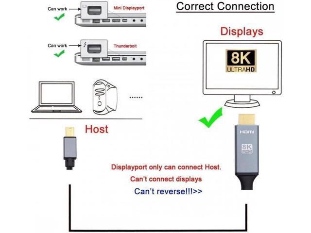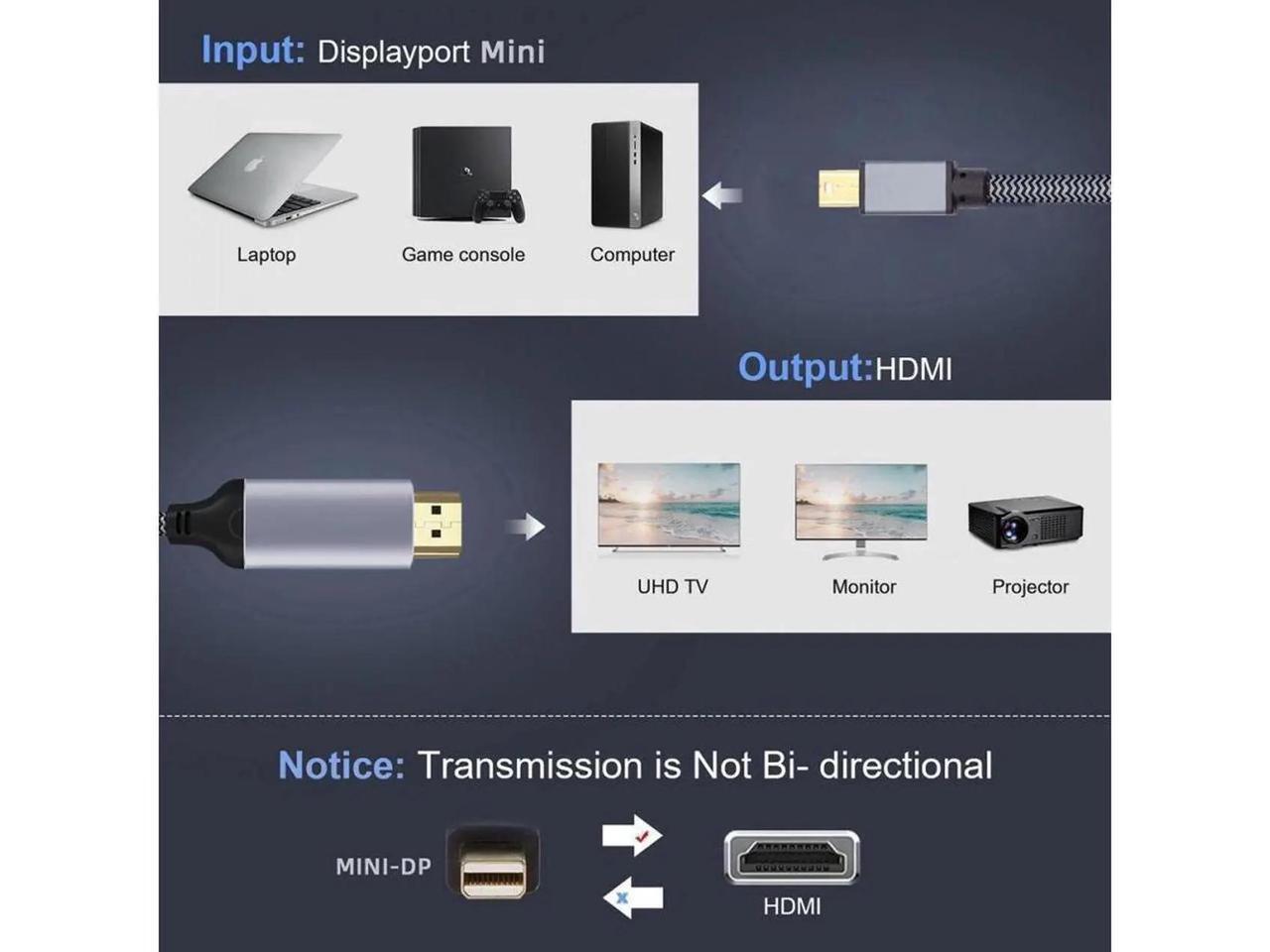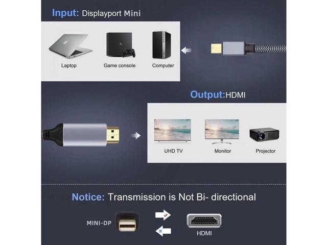 - This is a 8K MINI DisplayPort to HDMI cable, Not support HDMI to MINI DP. It is not Bi-directional.