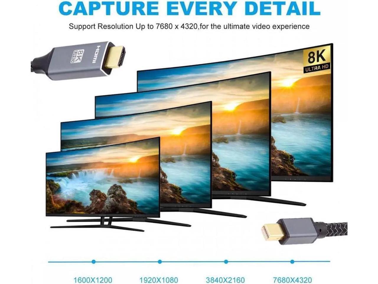 - MINI DP x HDMI cable supports 8K@60Hz, 4K@60Hz for MINI DisplayPort Enabled Desktops and Laptops to Connect to HDMI Displays, enjoy home theater with 8K/4K high resolution.