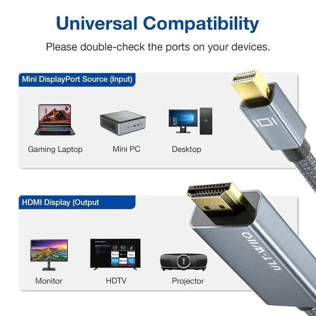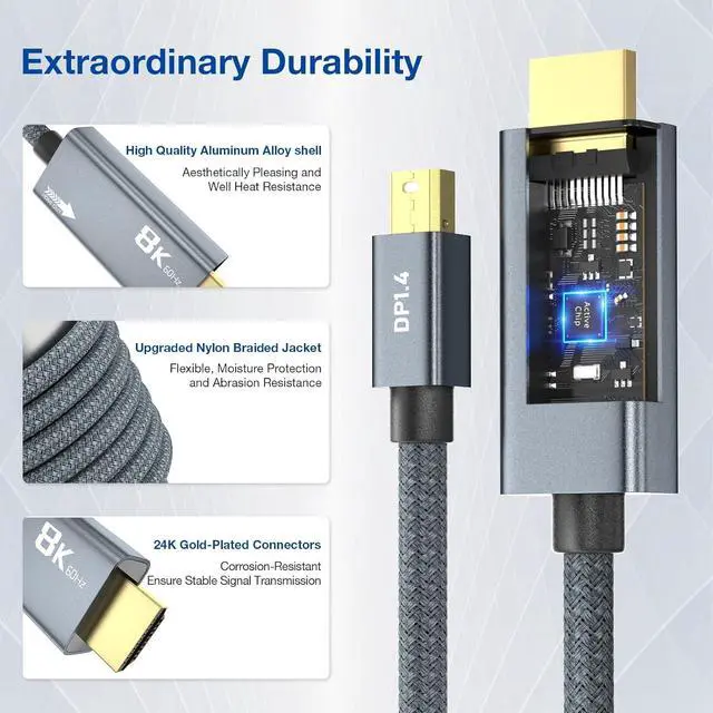 8K@60Hz Ultra High-Def Unlike others that only support 4K or even 1080P, the Mini DisplayPort male to HDMI male cord supports resolutions up to 8K (7680x4320) video at a high 60Hz refresh rate. And backward compatible with 4K@120Hz, 2K@240Hz/165Hz/144Hz, 1080P@240Hz. It's ideal to get the most out of your Surface Pro or MacBook.