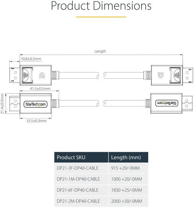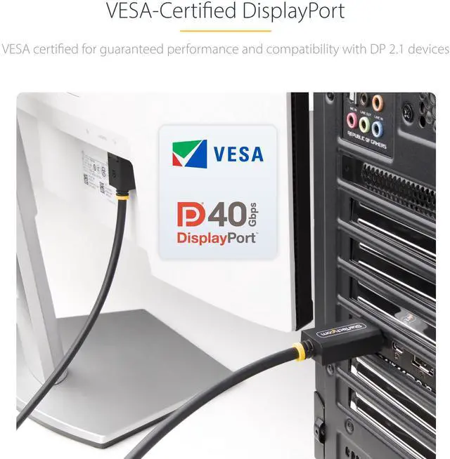 StarTech 3m (10ft) DisplayPort 2.1 Cable, VESA Certified DP40 DisplayPort Cable w/UHBR10/HDR/HDCP 2.2, 8K 60Hz/4K 144Hz w/DSC 1.2a, 40Gbps, DP 2.1 Cable, UHD Monitor Cord, M/M Model DP21-3M-DP40-CABLE