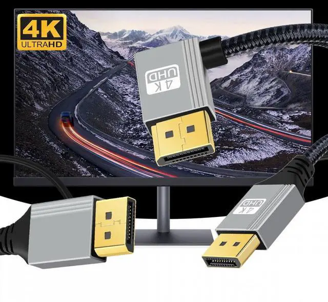 Right Angled DisplayPort DP to DP Cable 4K 60hz Cable Silver Sleeve Ultra-HD UHD 90 Degree for Desktop Laptop Monitor Graphics Card